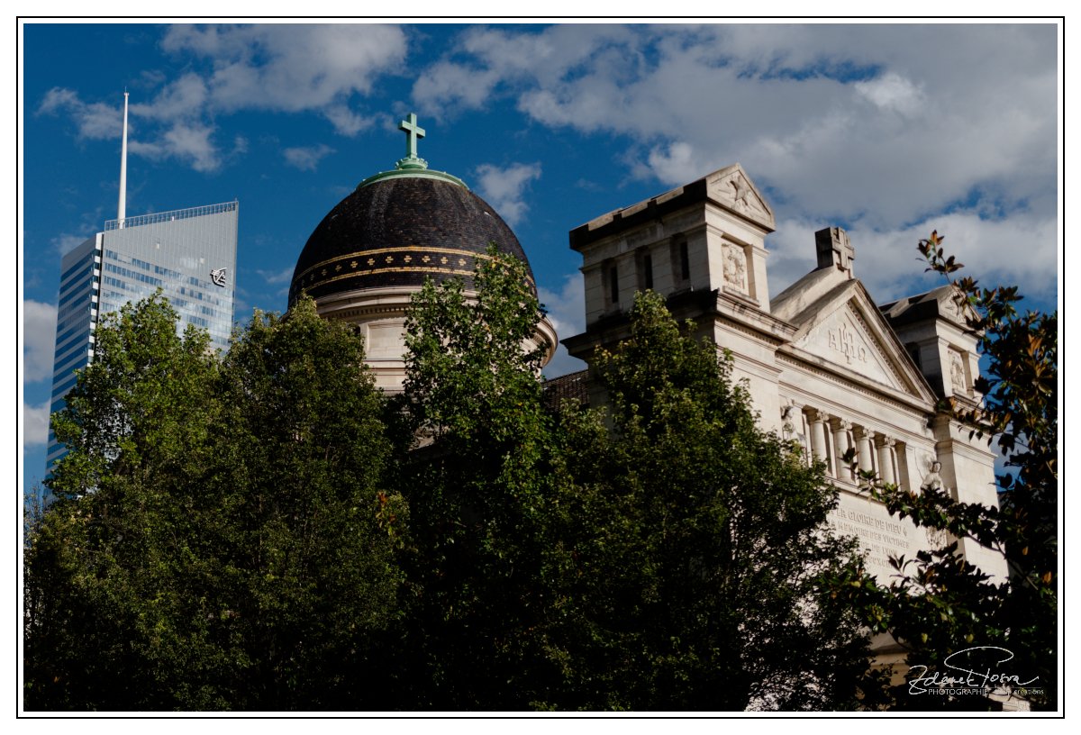 Dans ce quartier de Brotteaux, entre l’ancienne gare de Lyon-Brotteaux, désormais convertie en restaurant, et le Rhône, les rues nous renvoient à l’urbanisme du 18e siècle. Les tours modernes du quartier voisin de La Part-Dieu dépassent les toits pour affirmer la présence de la finance dans cette ville. Elles contrastent parfois avec les tours et coupoles des églises. On sent facilement l’envie de s’élever, certes pour des raisons différentes, mais toujours caractéristiques pour son époque.