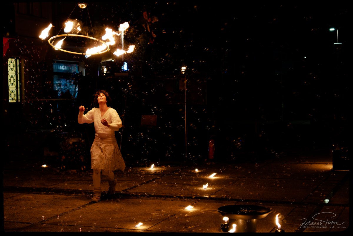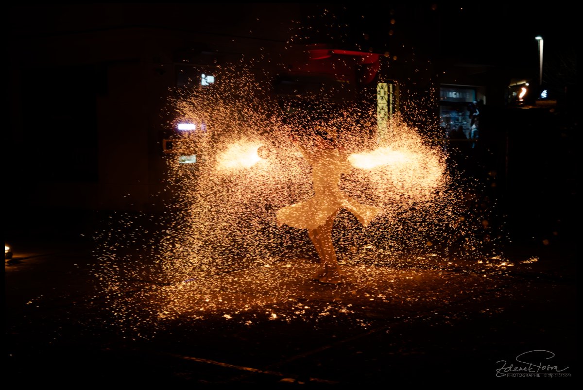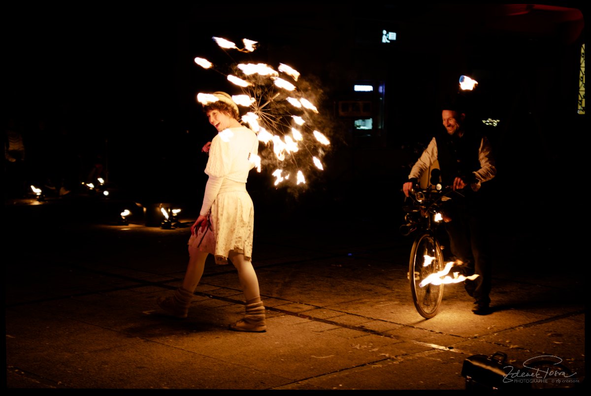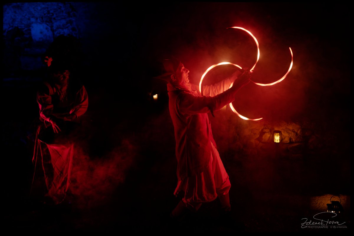 Pour un photographe, c’est l’occasion de mettre à rude épreuve son matériel pour immortaliser quelques scènes et faire ressortir de la nuit des expressions des artistes, dans une grande influence. Cette lumière générée par le feu ou par des ustensiles lumineux. Le feu éphémère qui illumine, chauffe, mais qui peut aussi brûler. La maîtrise appréciable des artistes.